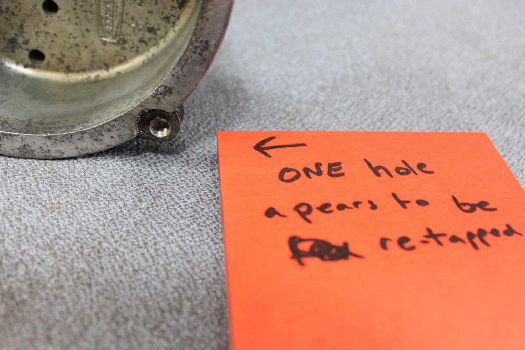 - Again, one of the screw holes has been tapped to a larger diameter