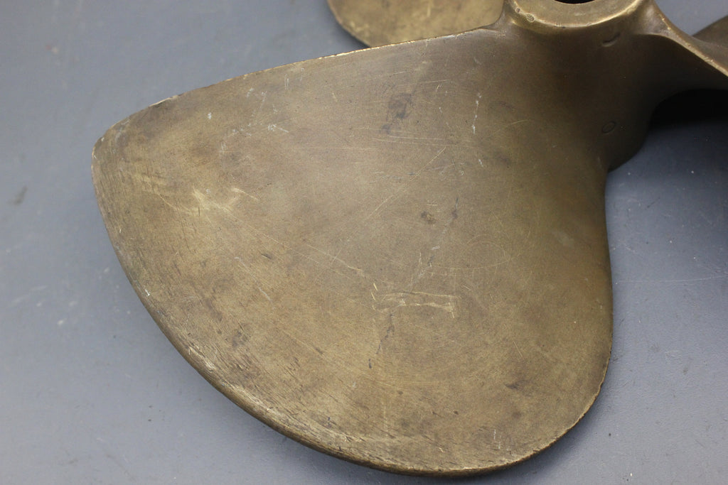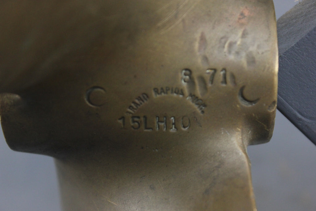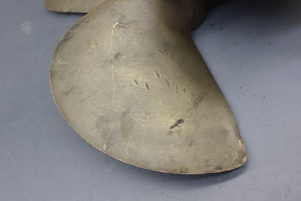 - I believe this is a bronze propeller as it looks different and does not have the standard Ni-Bral stamp as you would typically see on a Michigan Wheel propeller.